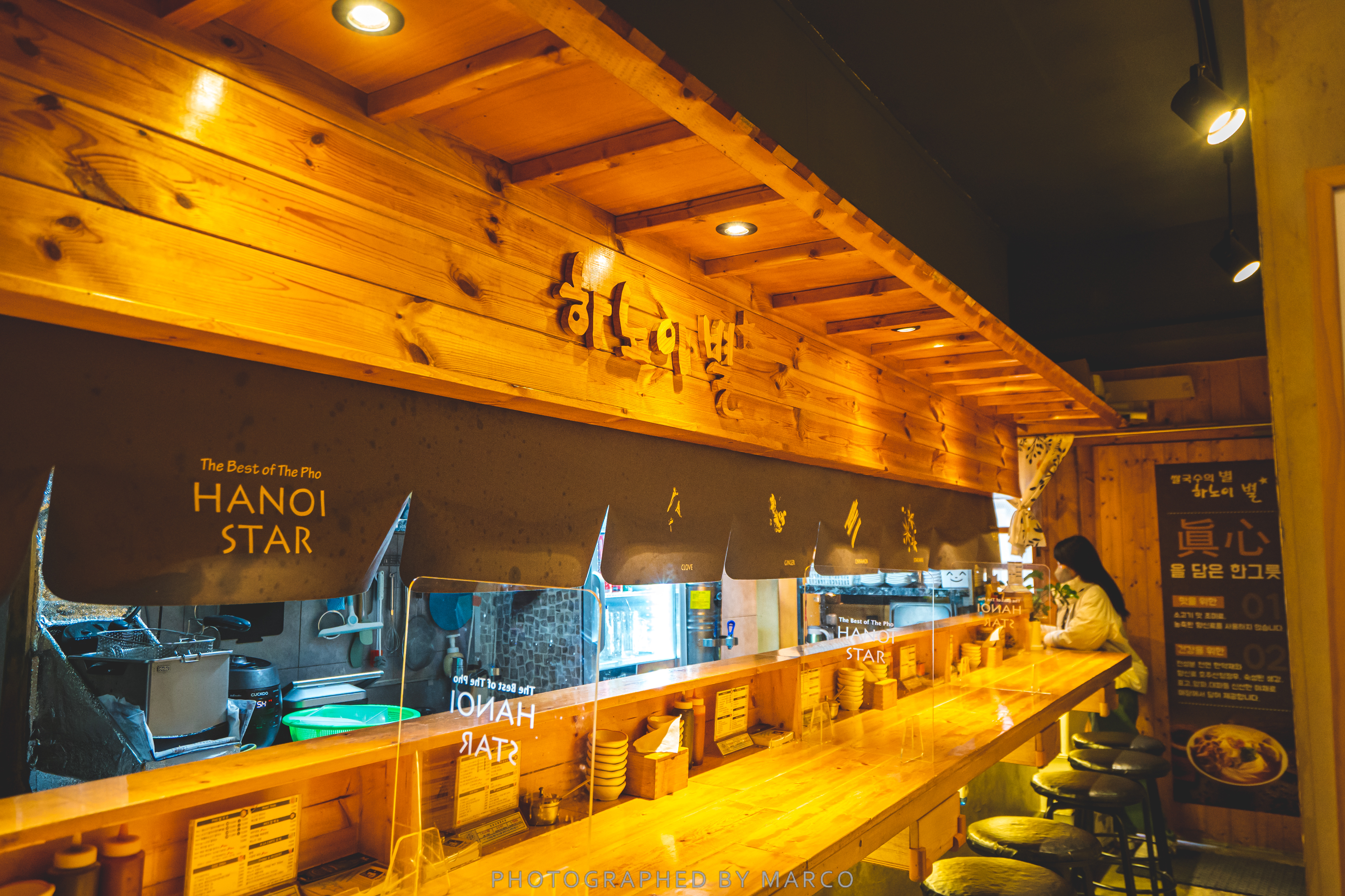 베트남 음식점인데 약간 일본라멘집 같은 일자형 다찌가 위치해 있다.