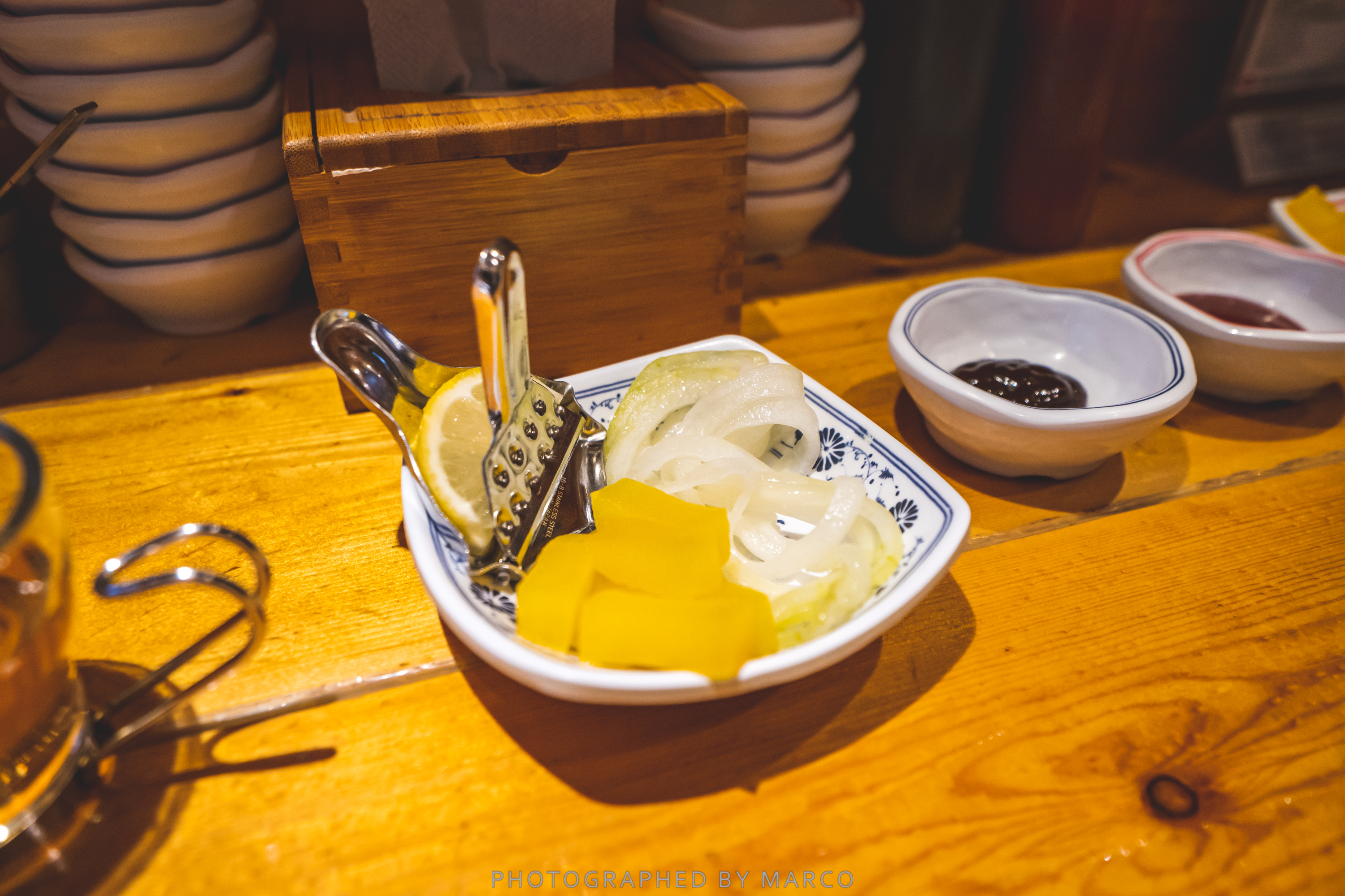 함께 나온 레몬과 양파, 단무지 등