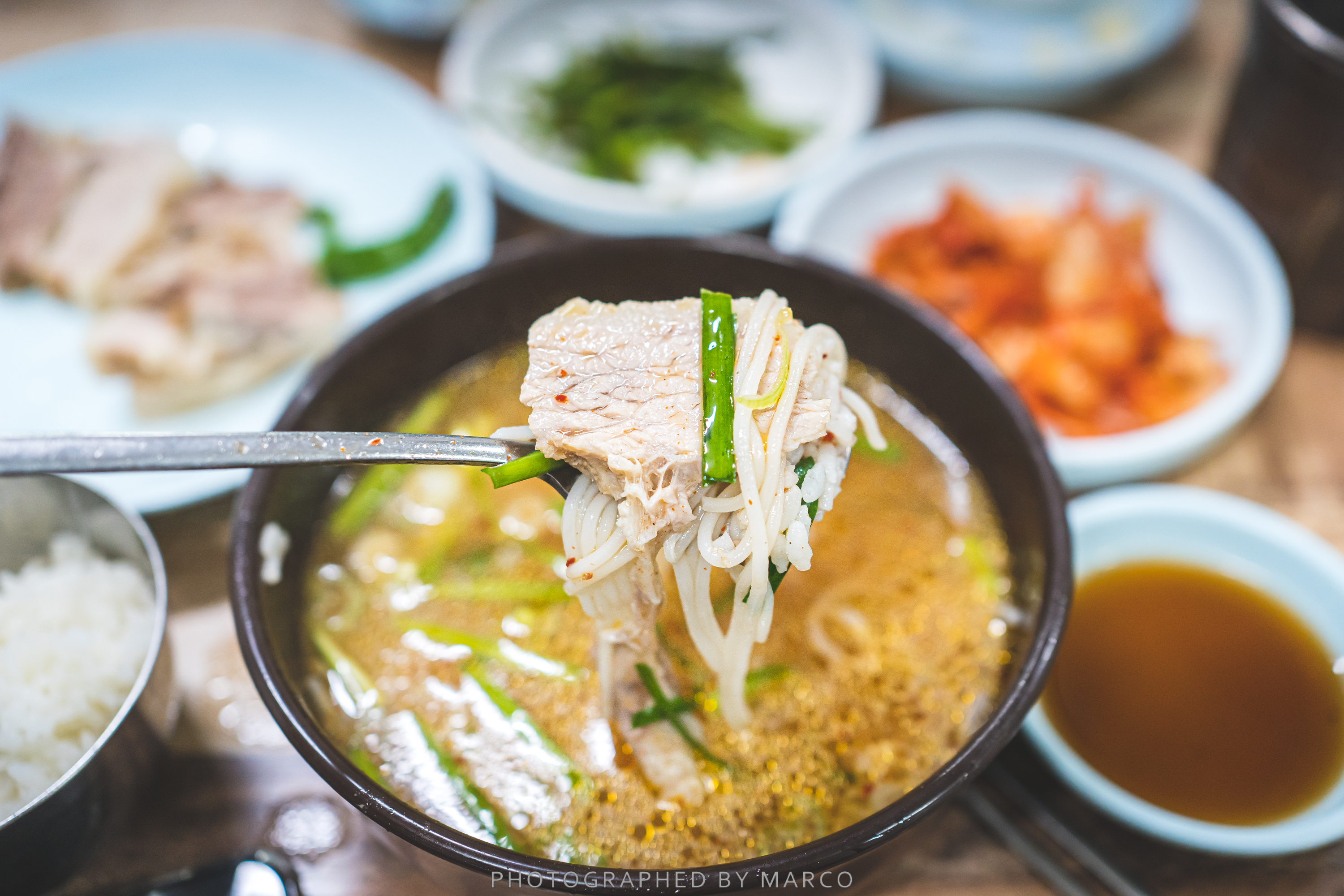 고추한입에 수육 한 점, 국밥 와악~ 먹고 양파 한 점..