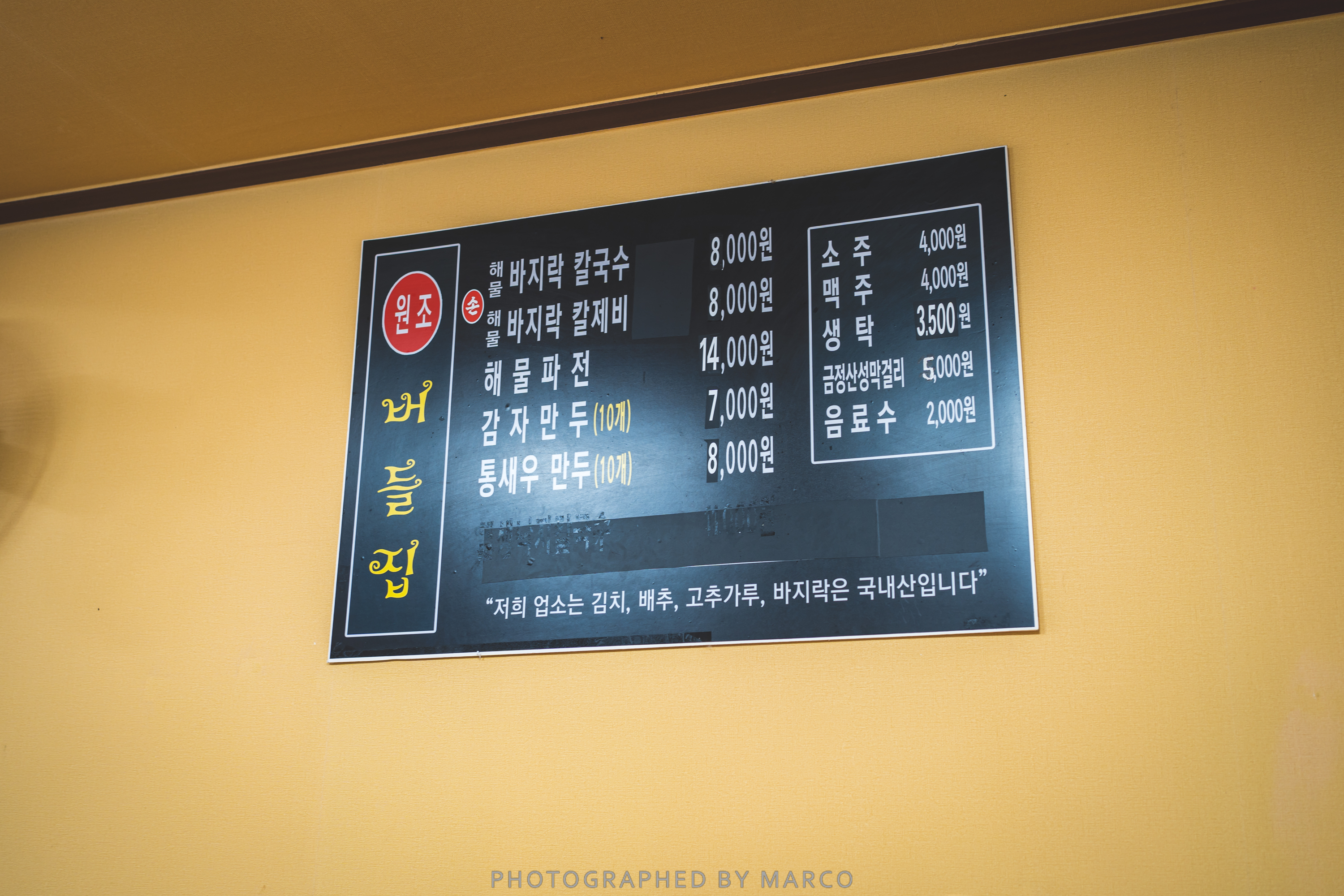 버들집은 바닷가 앞 가게들에서 쉽게 살펴볼 수 있는 메뉴들을 판다.