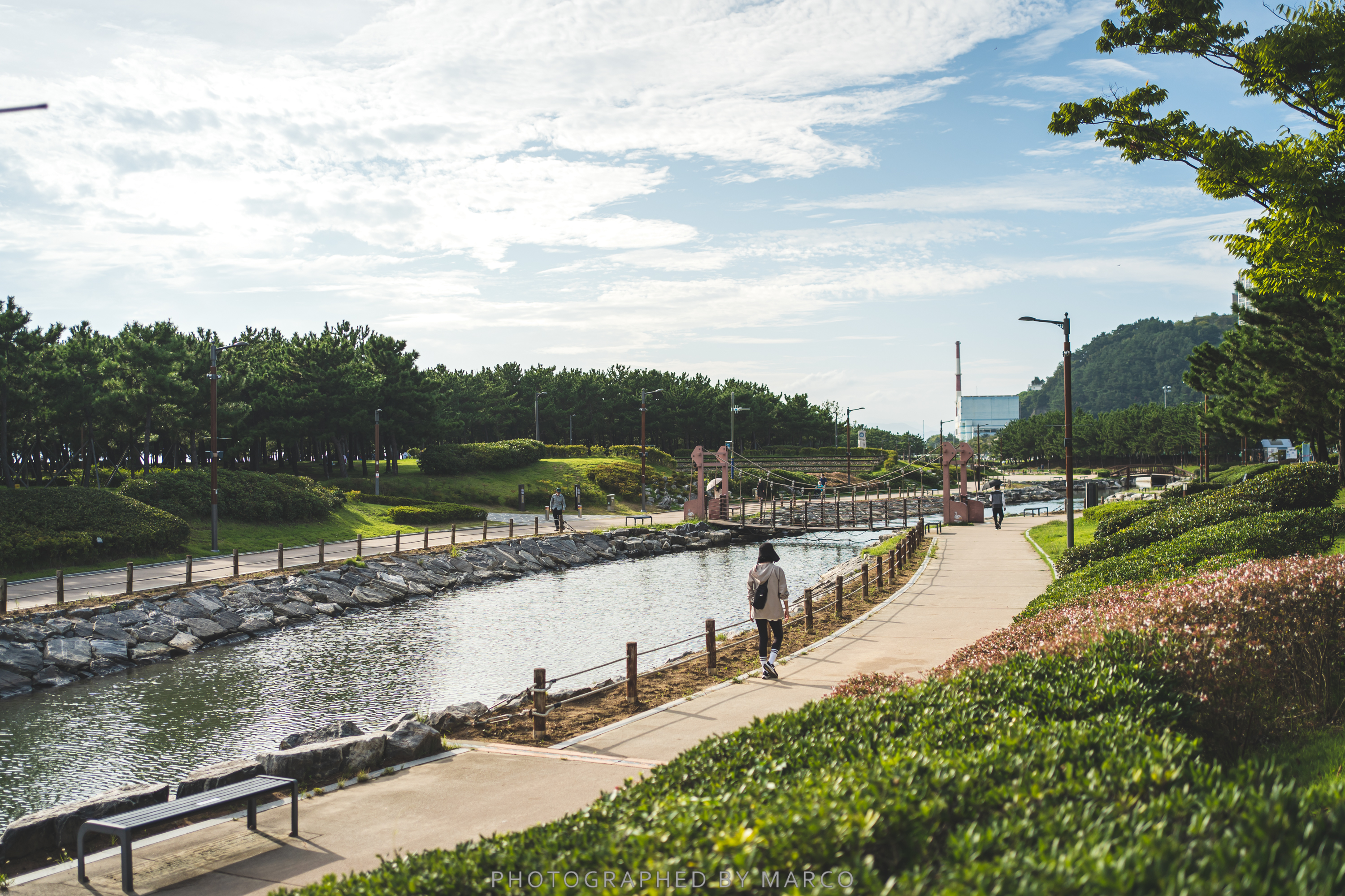 잘 조성된 공원지역을 지나