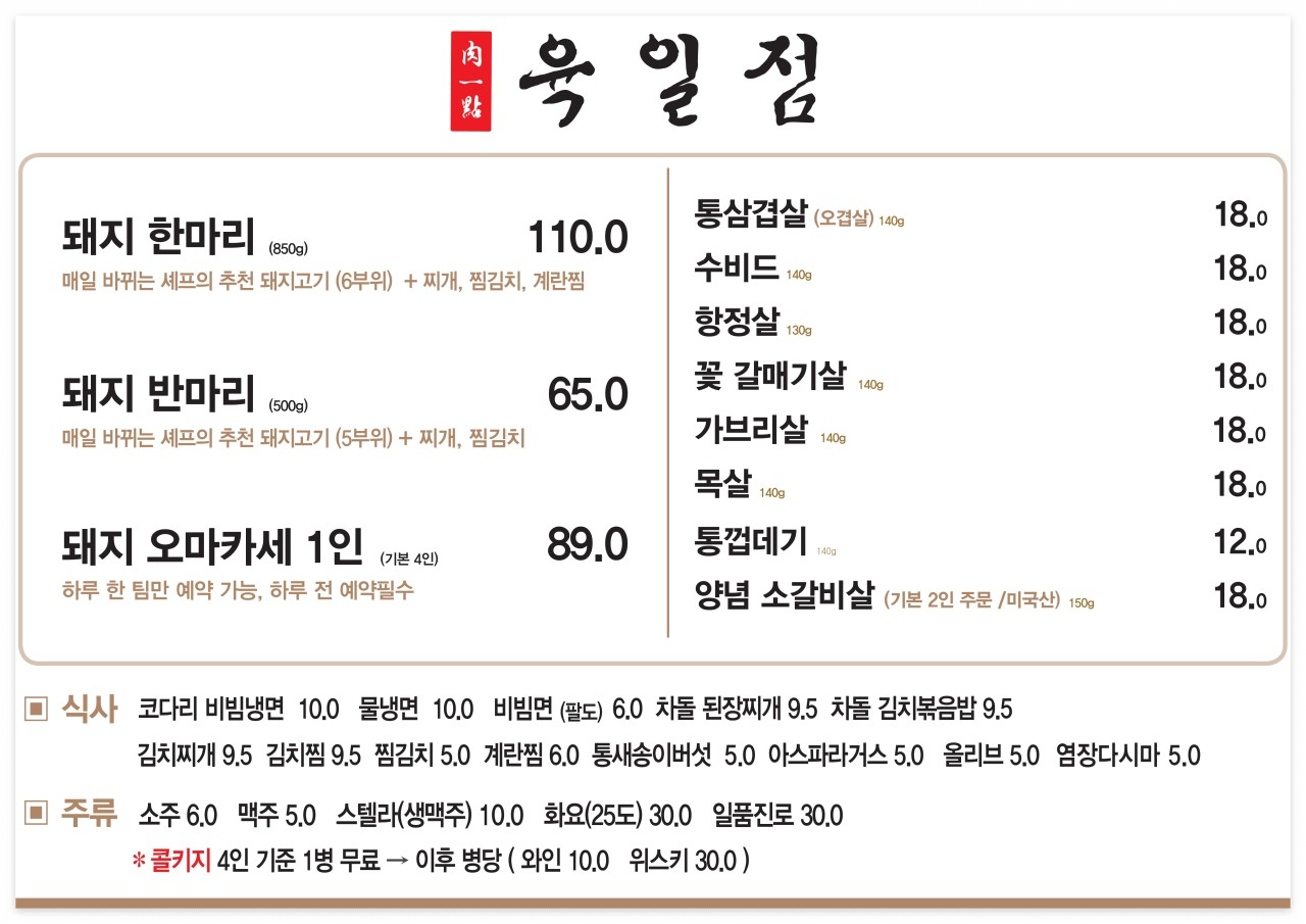 육일점은 4인 기준 콜키지 1병 프리