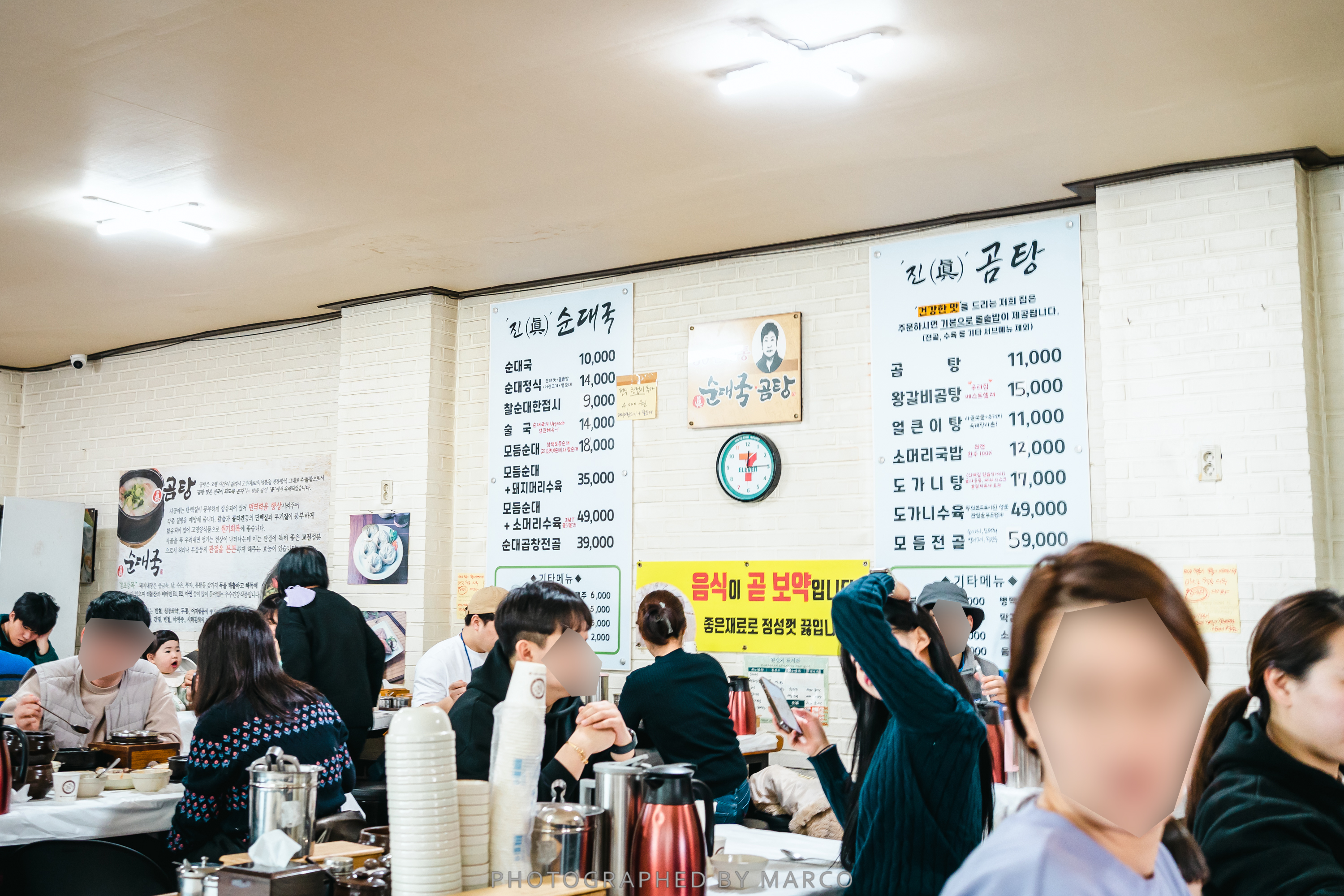메뉴는 진한 순대국과 곰탕류, 우리는 순대정식과 모둠순대, 도가니수육을 주문했다. (아침부터 거하게 ㅋㅋ)