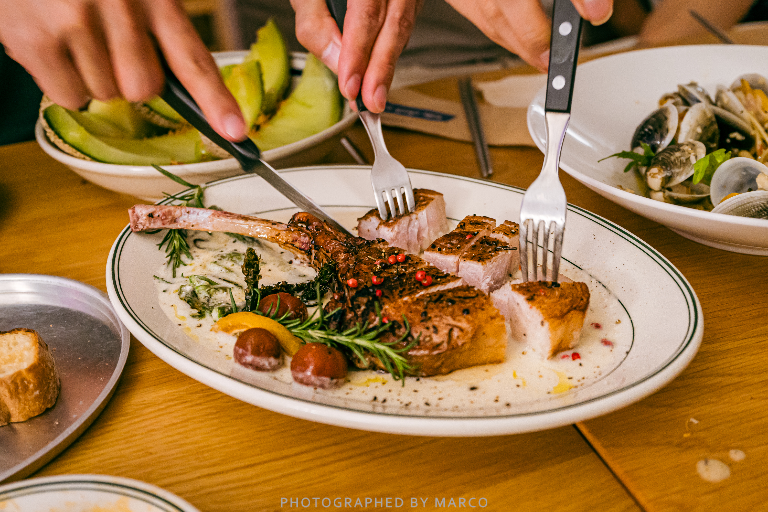 - 여러 부위를 한 번에 즐길 수 있는 뼈등심 스테이크와 마늘퓌레