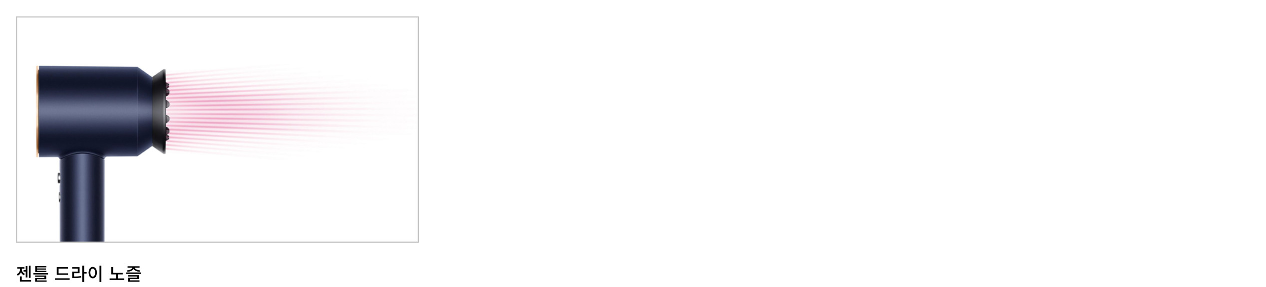 - 젠틀 드라이 노즐 : 얇은 모발과 민감한 두피를 위해 설계된 젠틀 드라이 노즐은 바람을 분산시켜 더욱 부드럽고 시원한 바람을 만들어 빠르게 모발을 건조합니다.