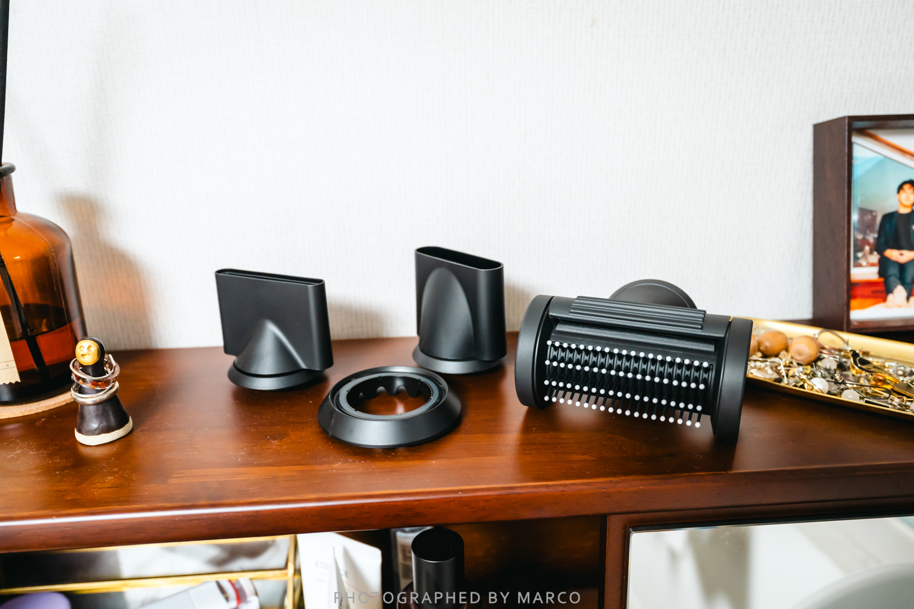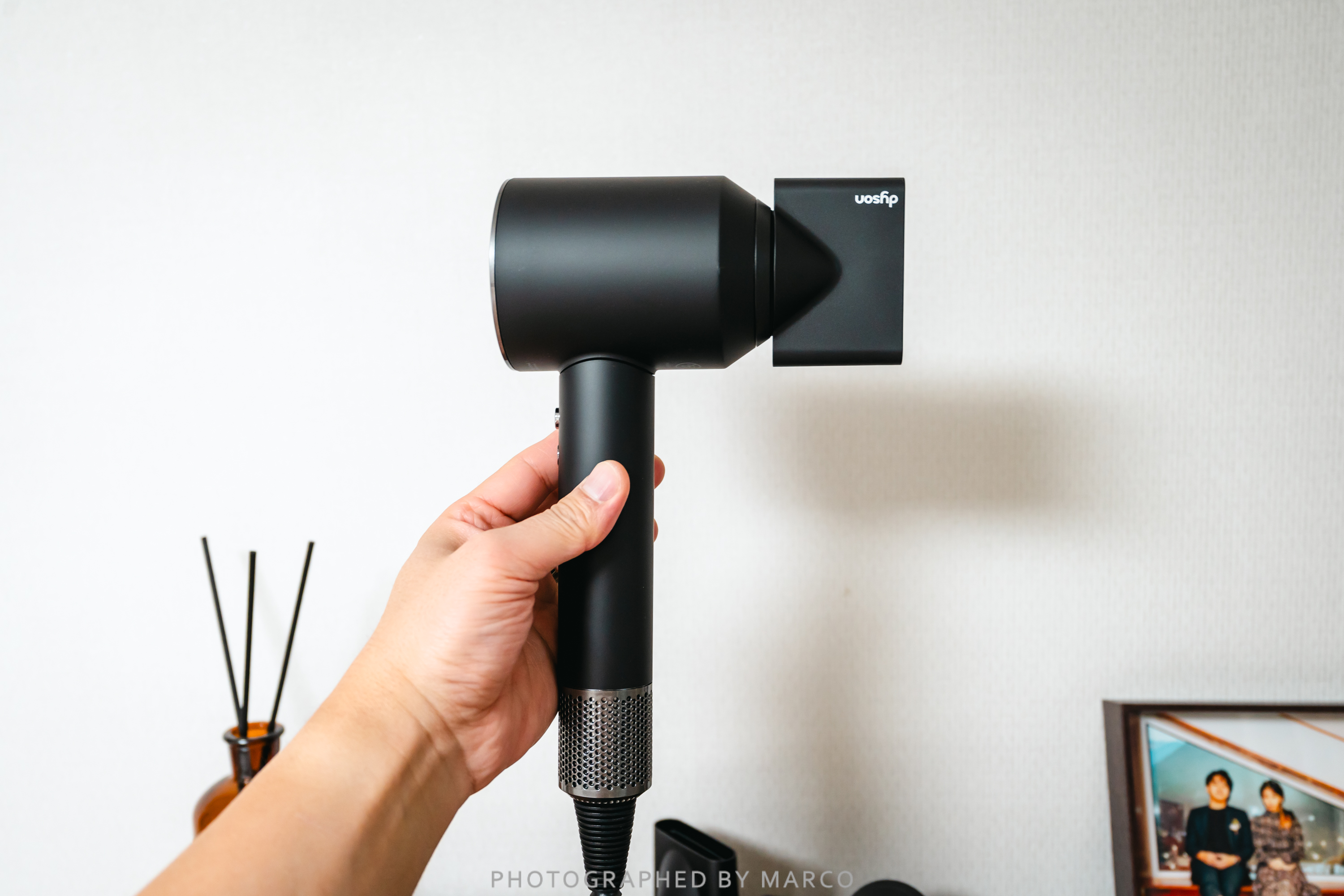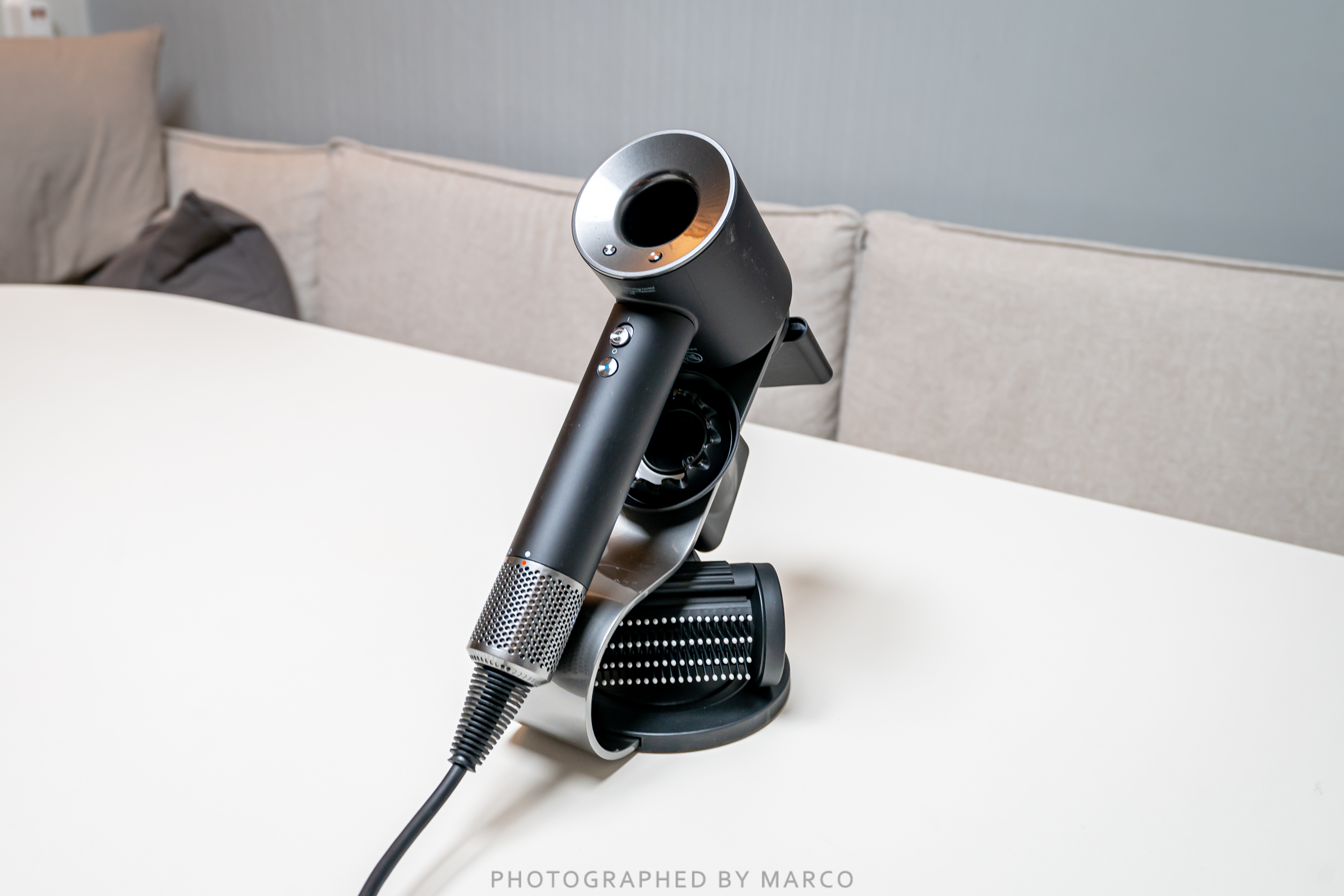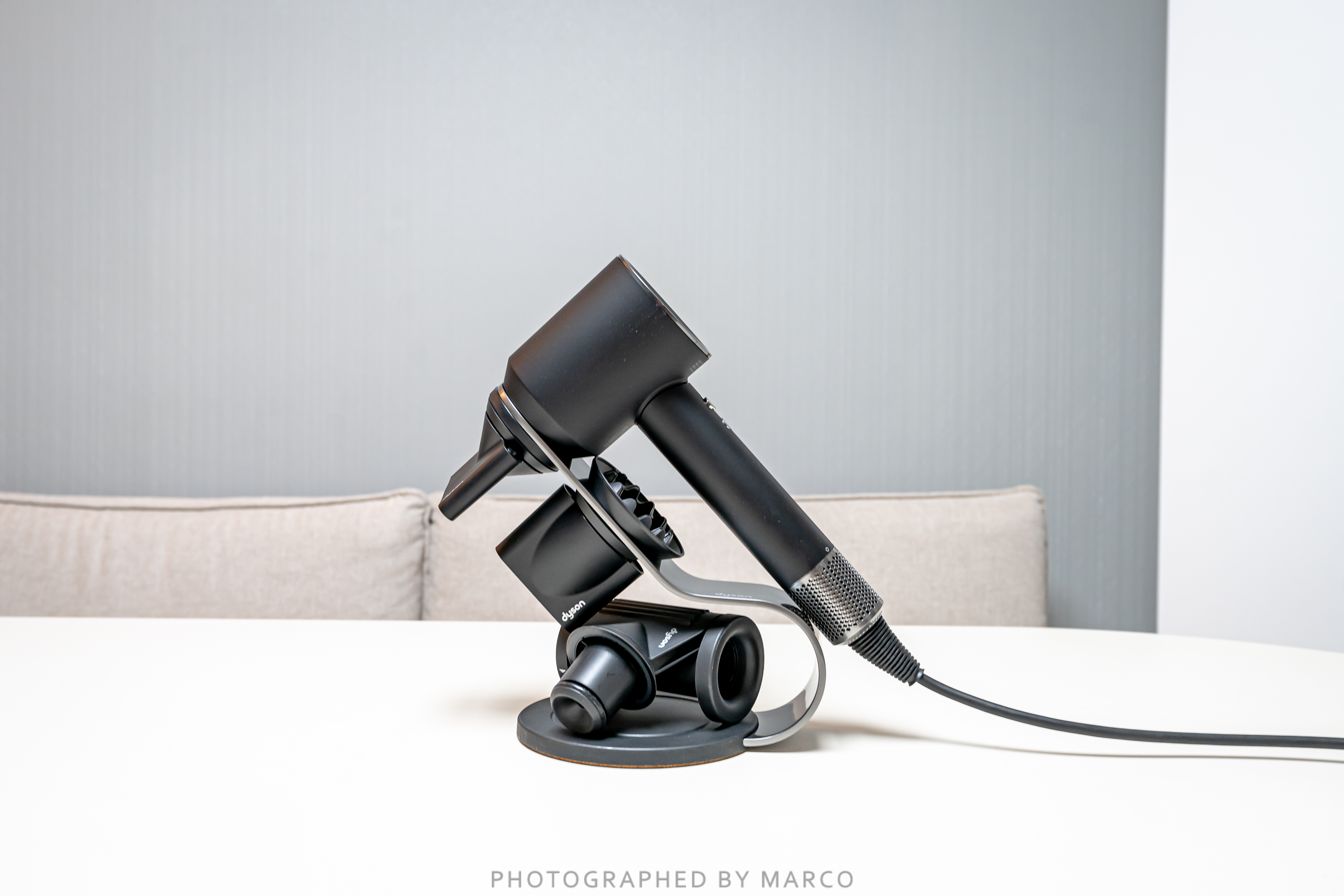 다이슨 수퍼소닉 전용 거치대는 노즐과 드라이어기 본체가 자석으로 착착 붙기 때문에 수퍼소닉과 노즐들을 깔끔하게 보관할 수 있어 사용하기 편리하고 인테리어적으로도 멋지고 세련된 느낌을 준다.