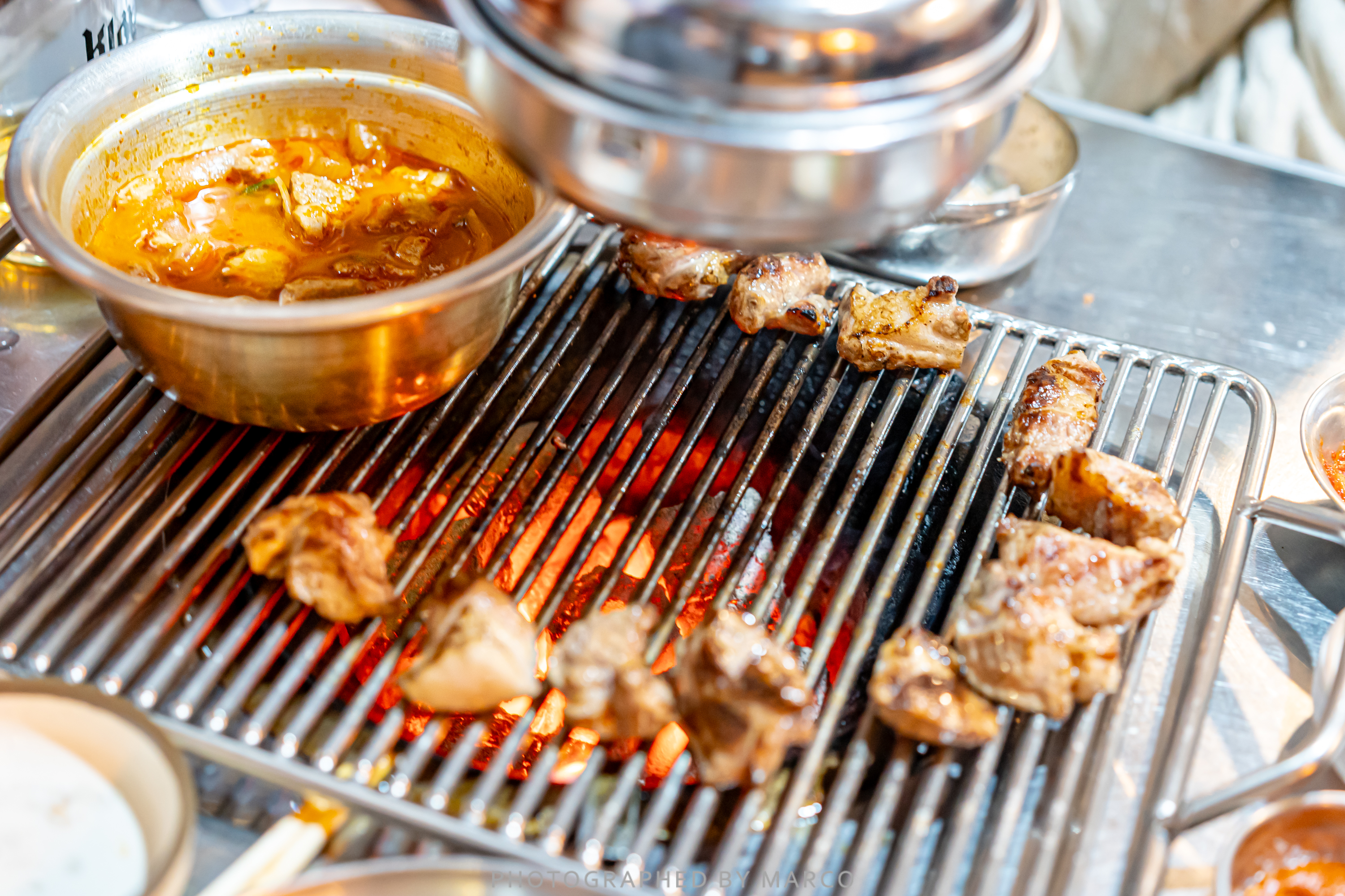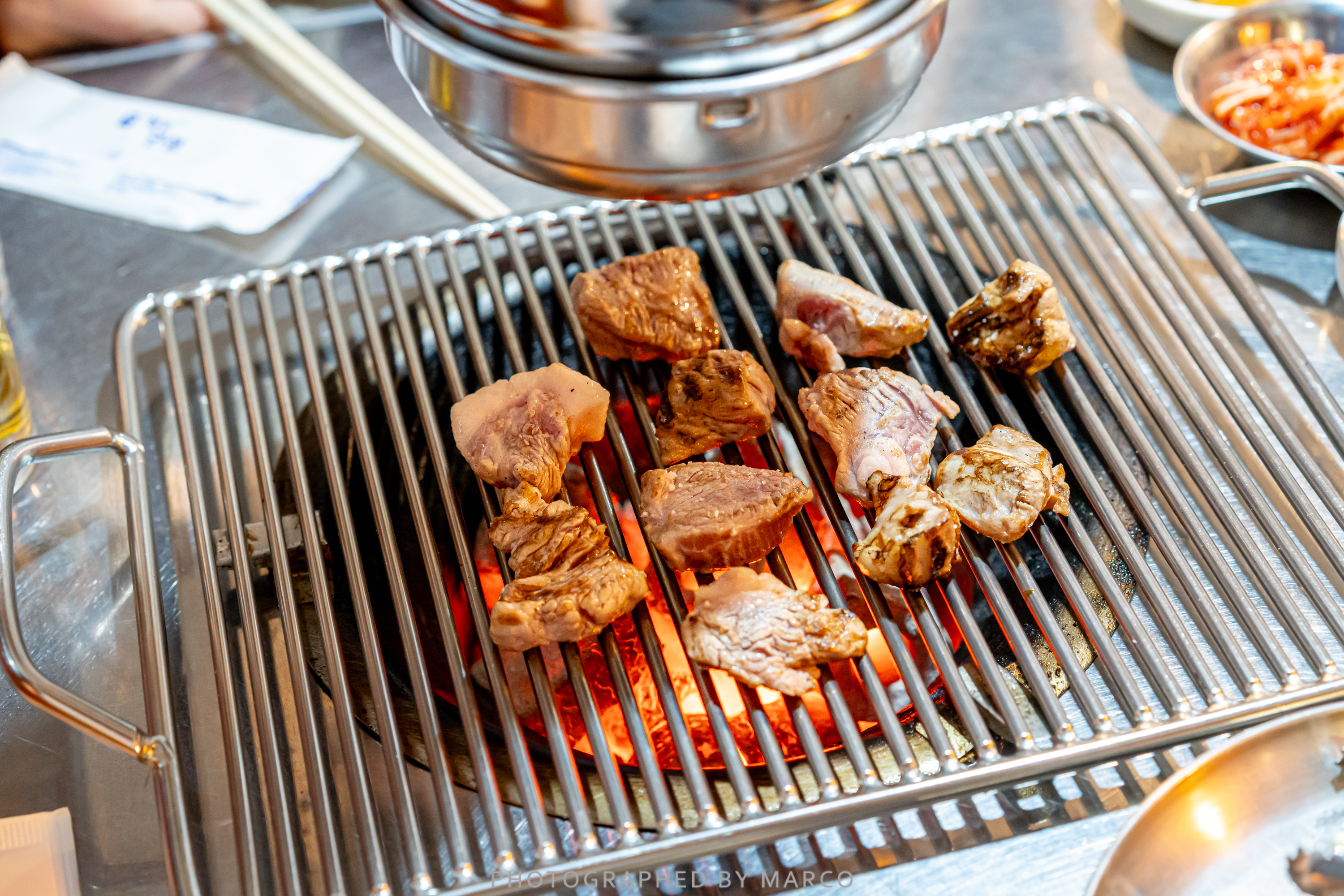 노포 감성 가득한(?) 연탄불 위에 올린다.