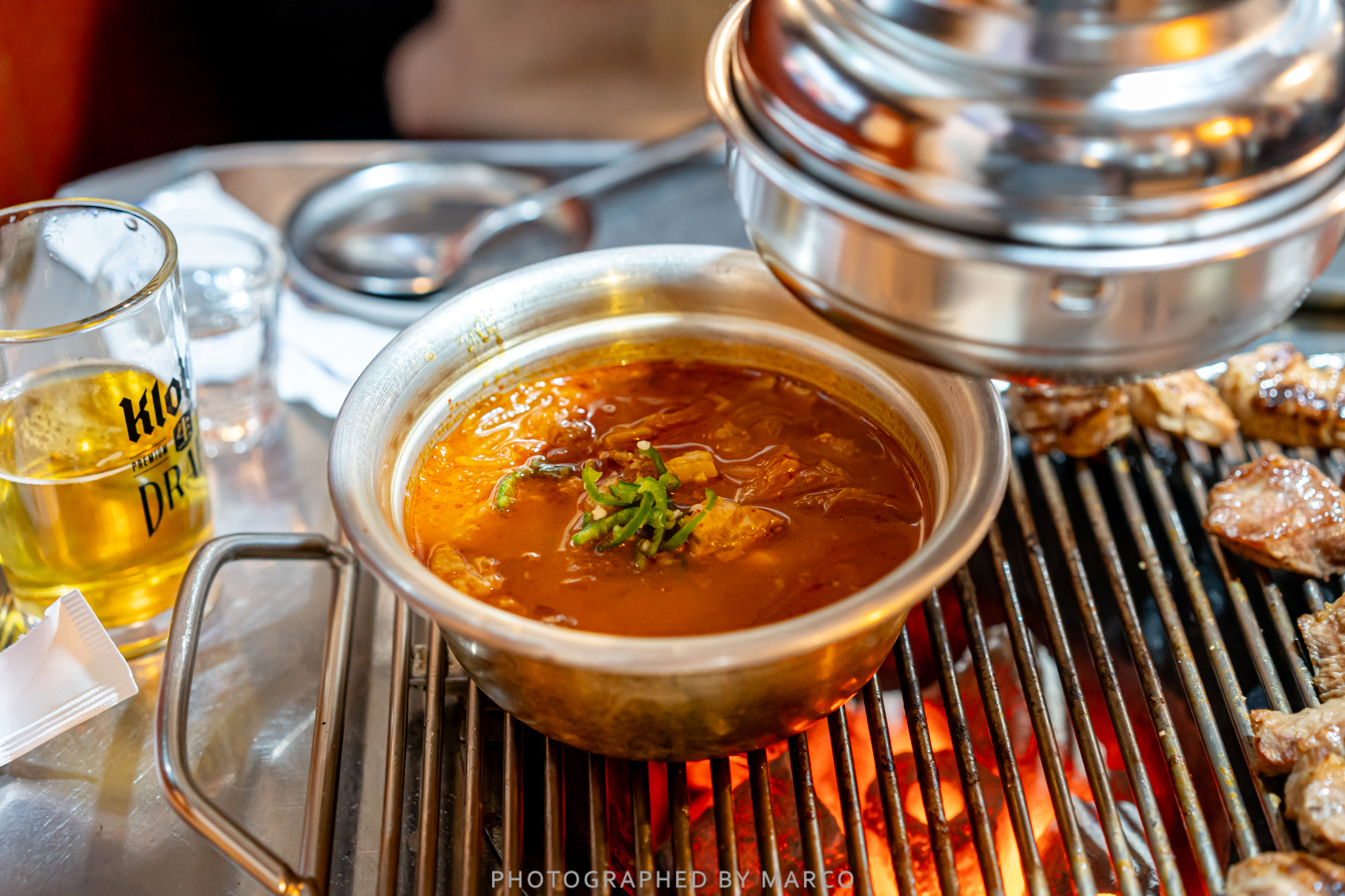 노포 감성 가득한(?) 연탄불 위에 올린다.